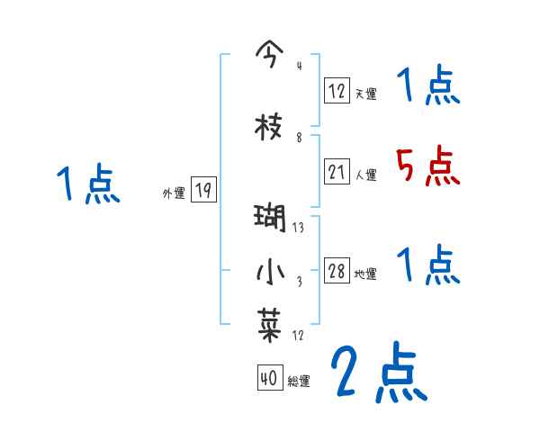 今枝瑚小菜さんの画数の鑑定結果