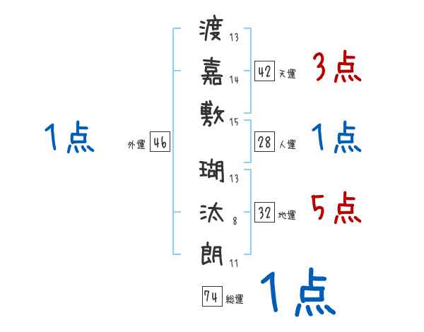 渡嘉敷瑚汰朗さんの画数の鑑定結果