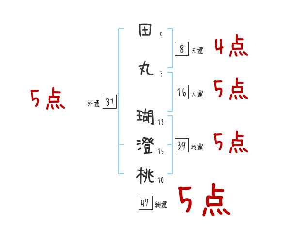 田丸瑚澄桃さんの画数の鑑定結果