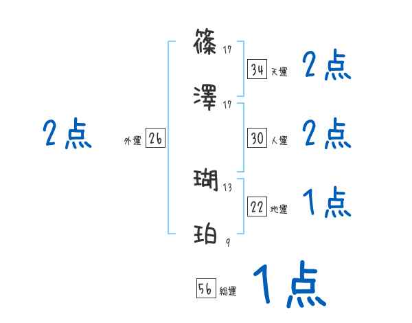 篠澤瑚珀さんの画数の鑑定結果