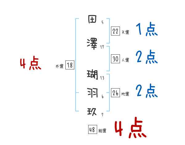 田澤瑚羽玖さんの画数の鑑定結果