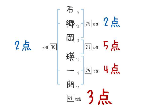 石郷岡瑛一朗さんの画数の鑑定結果