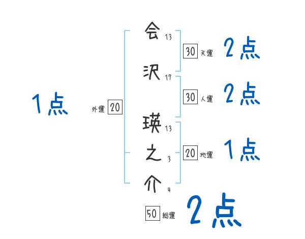会沢瑛之介さんの画数の鑑定結果