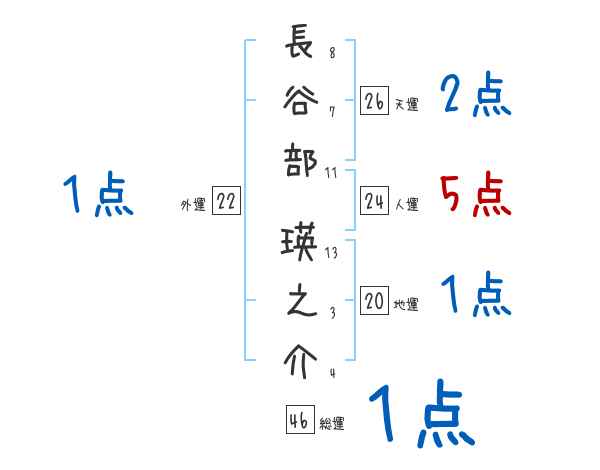 外運![]() | 長谷部瑛之介さんの外運は22画の1つ星!努力することが苦手ないっぽう手先が器用。芸術性にも優れる。 生活面を象徴する運勢です。外部から受ける影響力を表し、結婚運、家庭運や職場、環境への順応性を表します。 |