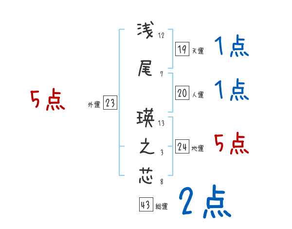 浅尾瑛之芯さんの画数の鑑定結果