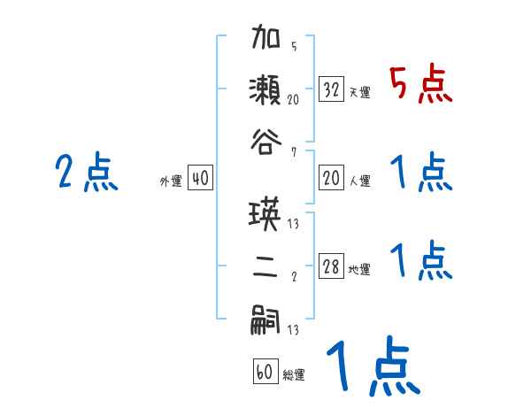 加瀬谷瑛二嗣さんの画数の鑑定結果