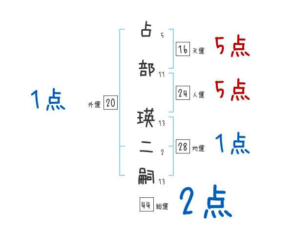 占部瑛二嗣さんの画数の鑑定結果