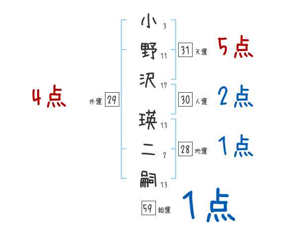 小野沢瑛二嗣さんの画数の鑑定結果