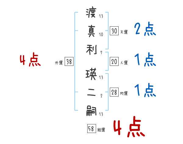 外運![]() | 渡真利瑛二嗣さんの外運は38画の4つ星!温厚な性格で技術的な才能を発揮する。職人的な仕事に向いている。 生活面を象徴する運勢です。外部から受ける影響力を表し、結婚運、家庭運や職場、環境への順応性を表します。 |
