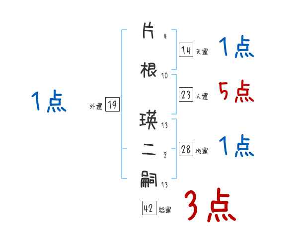 外運![]() | 片根瑛二嗣さんの外運は19画の1つ星!優れた才能を持ちますが、協調性が足りないことも。周りの人と協力する事を意識しましょう。 生活面を象徴する運勢です。外部から受ける影響力を表し、結婚運、家庭運や職場、環境への順応性を表します。 |