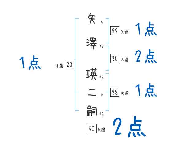 矢澤瑛二嗣さんの画数の鑑定結果
