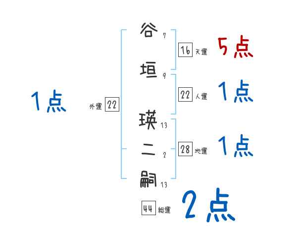 谷垣瑛二嗣さんの外運は22画の1つ星