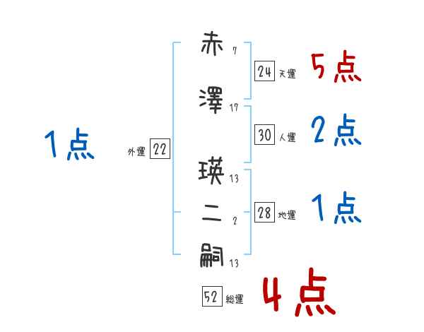 赤澤瑛二嗣さんの画数の鑑定結果
