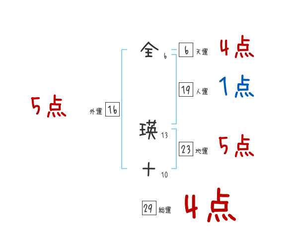 全瑛十さんの画数の鑑定結果