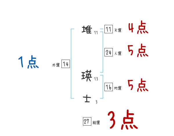 堆瑛士さんの画数の鑑定結果