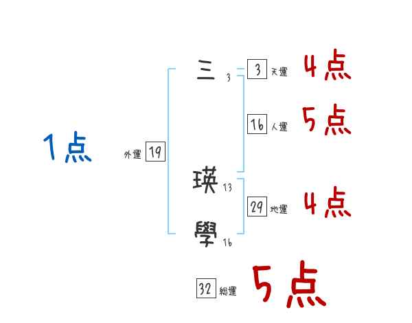 総運![]() | 三瑛學さんの総運は32画の5つ星!柔軟性があり成功する。チャンスが多く金運が良い。 あなたの人生を表す1番重要な運勢です。生涯を通じて影響する総合運となり、主に50歳以降の晩年期に影響を及ぼします。 |