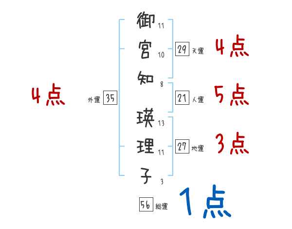 御宮知瑛理子さんの画数の鑑定結果