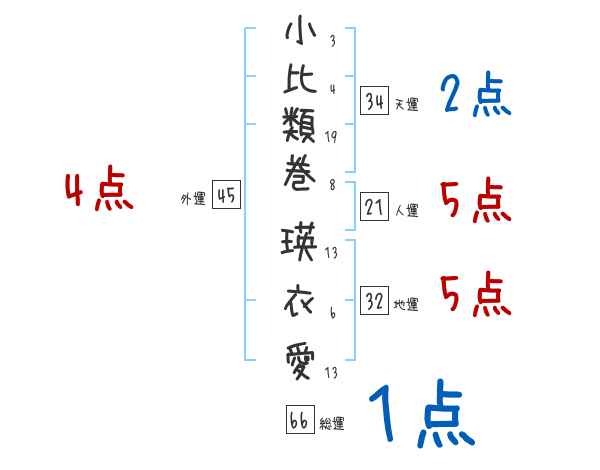 小比類巻瑛衣愛さんの画数の鑑定結果