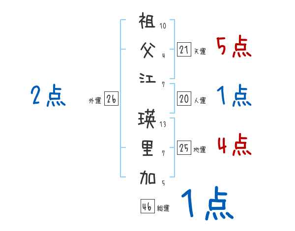 天運![]() | 祖父江瑛里加さんの天運は21画の5つ星!統率力がある。独立し成功する。名誉を手に入れる。 家系が持つ宿命的な運勢を表します。祖先から受け継いだ苗字ですので自分の力が及びません。家柄を象徴します。 |