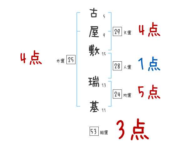 古屋敷瑞基さんの画数の鑑定結果