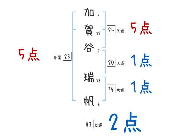 加賀谷瑞帆さんの画数の鑑定結果