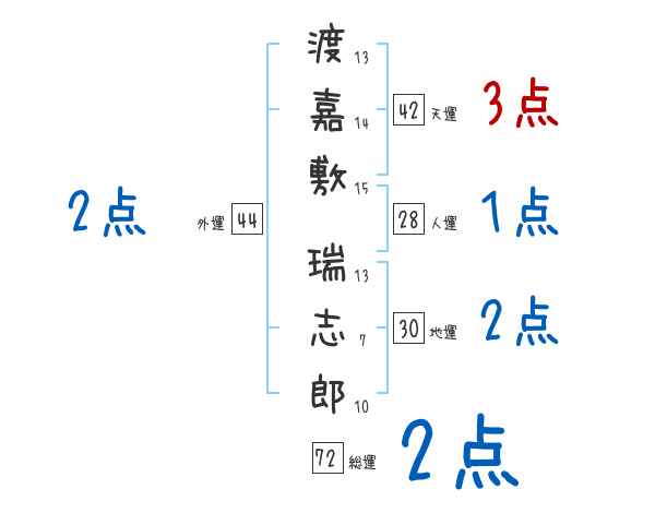 渡嘉敷瑞志郎さんの画数の鑑定結果