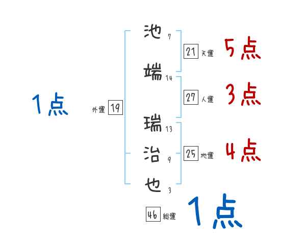 天運![]() | 池端瑞治也さんの天運は21画の5つ星!統率力がある。独立し成功する。名誉を手に入れる。 家系が持つ宿命的な運勢を表します。祖先から受け継いだ苗字ですので自分の力が及びません。家柄を象徴します。 |