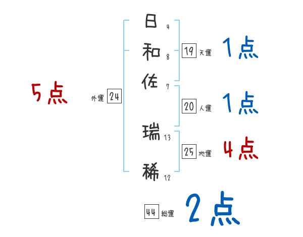 外運![]() | 日和佐瑞稀さんの外運は24画の5つ星!家庭運が良く順調な人生。金運にも恵まれる。 生活面を象徴する運勢です。外部から受ける影響力を表し、結婚運、家庭運や職場、環境への順応性を表します。 |
