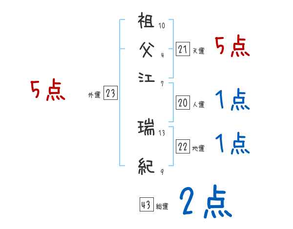 祖父江瑞紀さんの画数の鑑定結果