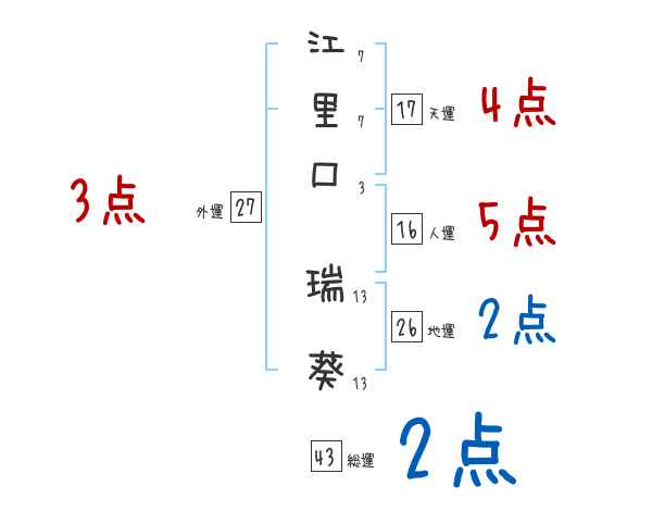 江里口瑞葵さんの画数の鑑定結果