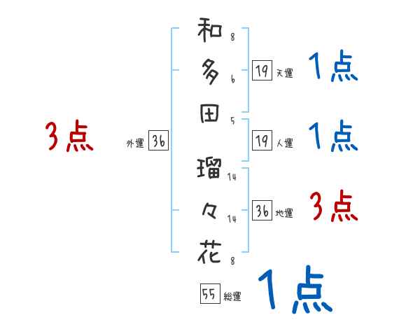 和多田瑠々花さんの画数の鑑定結果