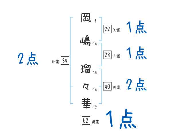岡嶋瑠々華さんの画数の鑑定結果