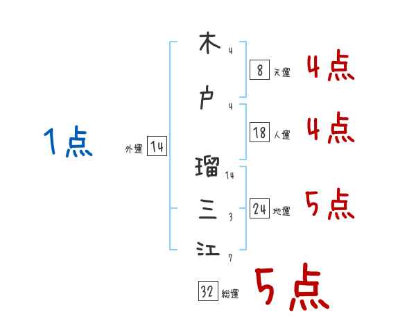 木戸瑠三江さんの画数の鑑定結果