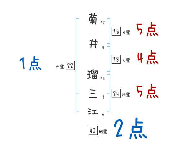 菊井瑠三江さんの外運は22画の1つ星