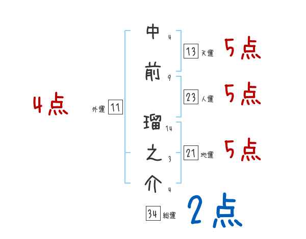 中前瑠之介さんの画数の鑑定結果
