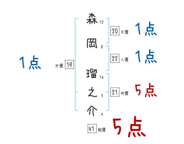 外運![]() | 森岡瑠之介さんの外運は19画の1つ星!優れた才能を持ちますが、協調性が足りないことも。周りの人と協力する事を意識しましょう。 生活面を象徴する運勢です。外部から受ける影響力を表し、結婚運、家庭運や職場、環境への順応性を表します。 |