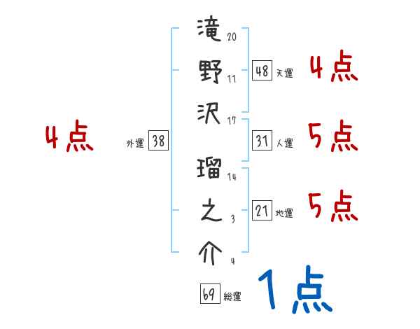 滝野沢瑠之介さんの画数の鑑定結果