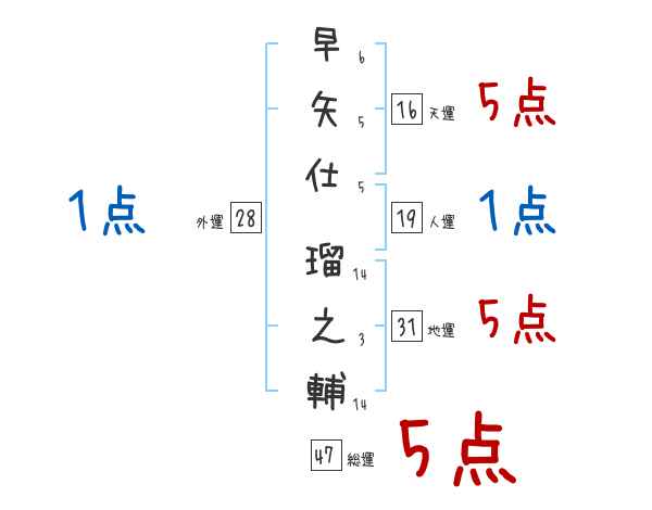 早矢仕瑠之輔さんの画数の鑑定結果