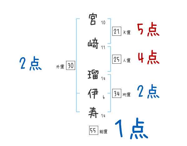 宮﨑瑠伊寿さんの画数の鑑定結果