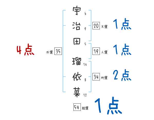 宇治田瑠依菜さんの画数の鑑定結果