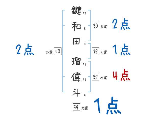 鍵和田瑠偉斗さんの画数の鑑定結果