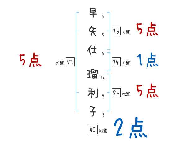 外運![]() | 早矢仕瑠利子さんの外運は21画の5つ星!統率力がある。独立し成功する。名誉を手に入れる。 生活面を象徴する運勢です。外部から受ける影響力を表し、結婚運、家庭運や職場、環境への順応性を表します。 |