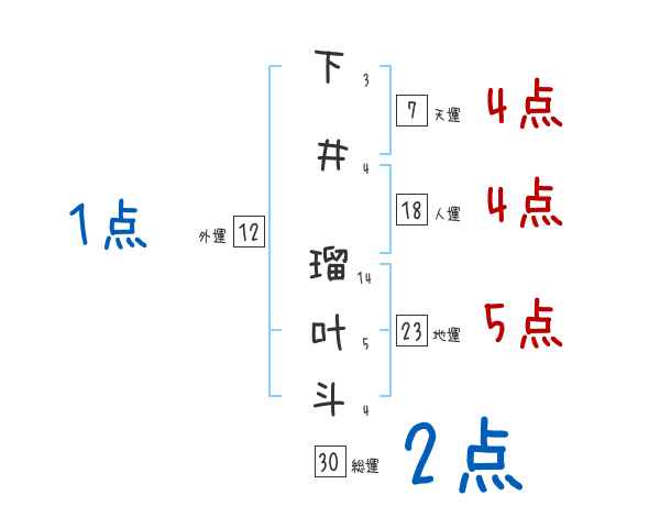 総運![]() | 下井瑠叶斗さんの総運は30画の2つ星!浮き沈みの激しさに注意しましょう。 あなたの人生を表す1番重要な運勢です。生涯を通じて影響する総合運となり、主に50歳以降の晩年期に影響を及ぼします。 |