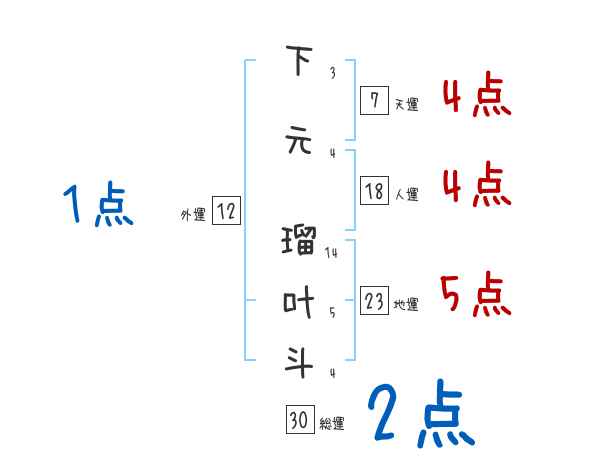 下元瑠叶斗さんの画数の鑑定結果