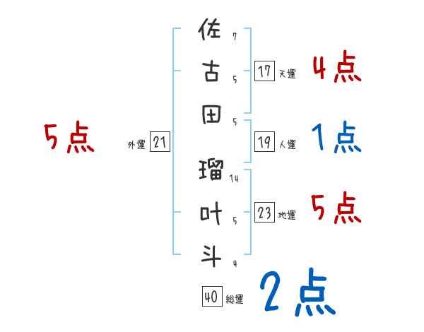 佐古田瑠叶斗さんの画数の鑑定結果