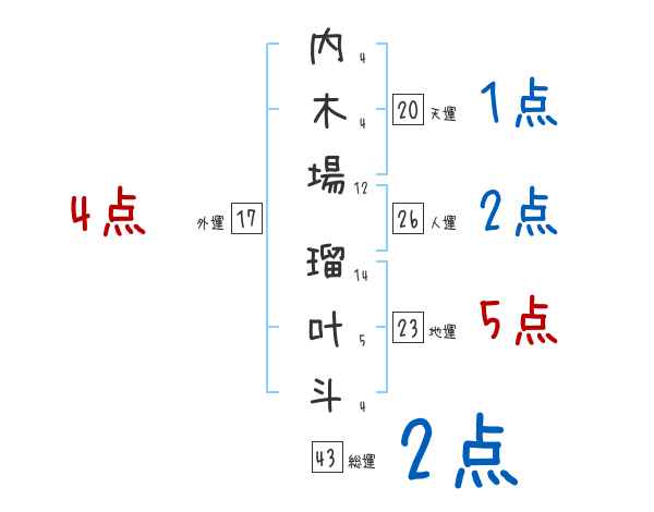 内木場瑠叶斗さんの画数の鑑定結果