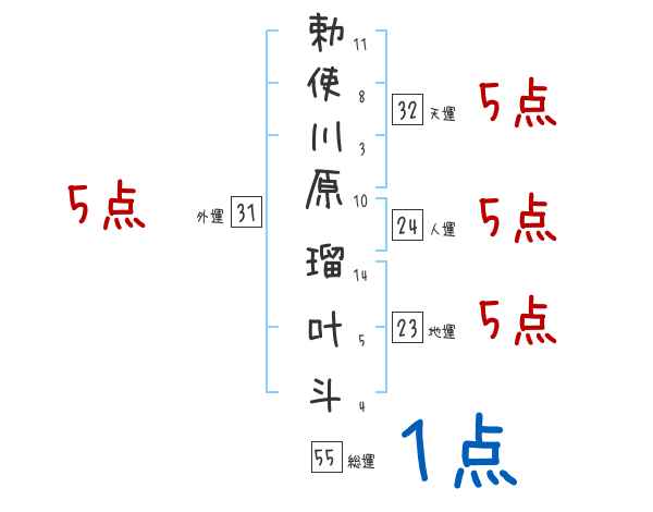 勅使川原瑠叶斗さんの画数の鑑定結果