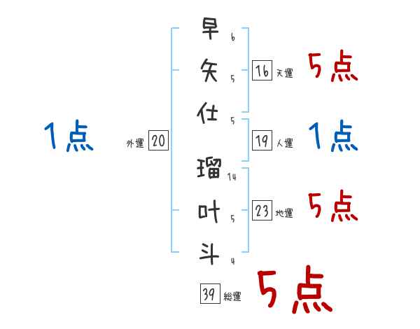 早矢仕瑠叶斗さんの画数の鑑定結果