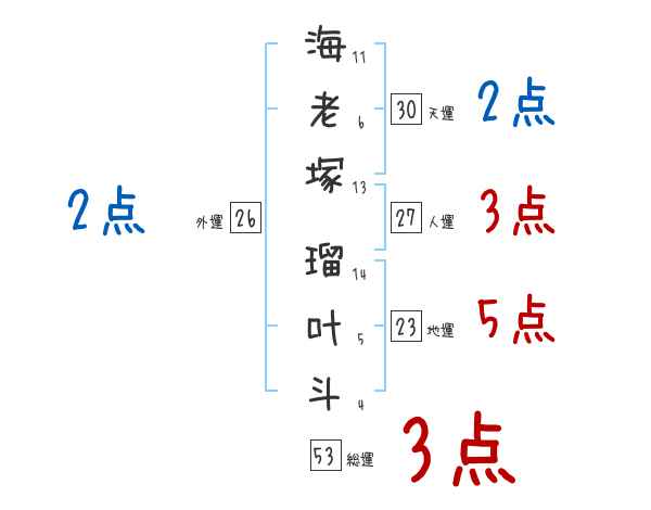外運![]() | 海老塚瑠叶斗さんの外運は26画の2つ星!波瀾万丈かも。信頼できる人を大事にしましょう。 生活面を象徴する運勢です。外部から受ける影響力を表し、結婚運、家庭運や職場、環境への順応性を表します。 |