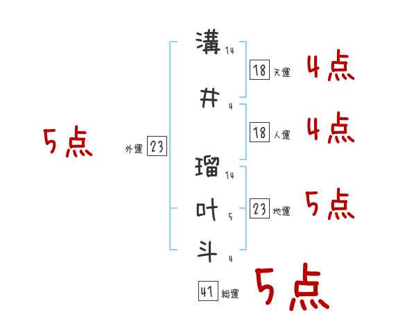 外運![]() | 溝井瑠叶斗さんの外運は23画の5つ星!想像力に優れ活力がある。一代で成功し名誉を手に入れる。 生活面を象徴する運勢です。外部から受ける影響力を表し、結婚運、家庭運や職場、環境への順応性を表します。 |